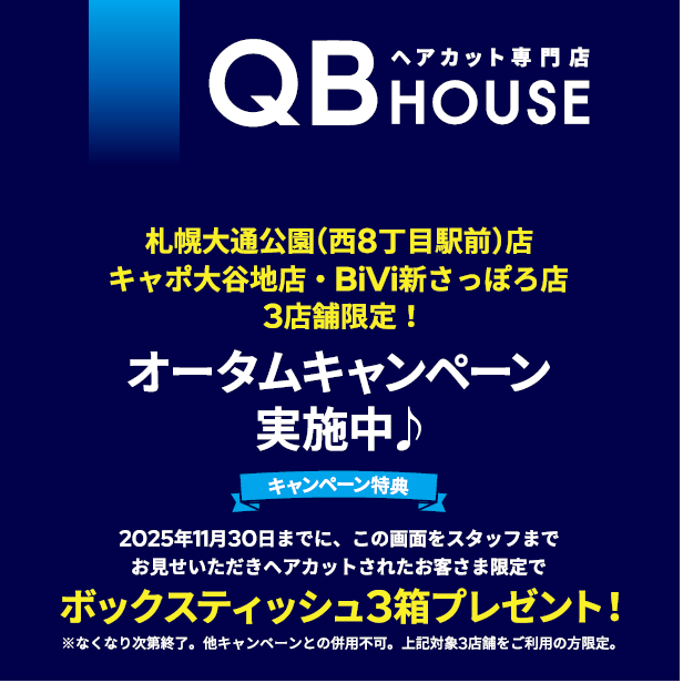 対象店舗:札幌大通公園(西8丁目駅前)店・キャポ大谷地店・BiVi新さっぽろ店