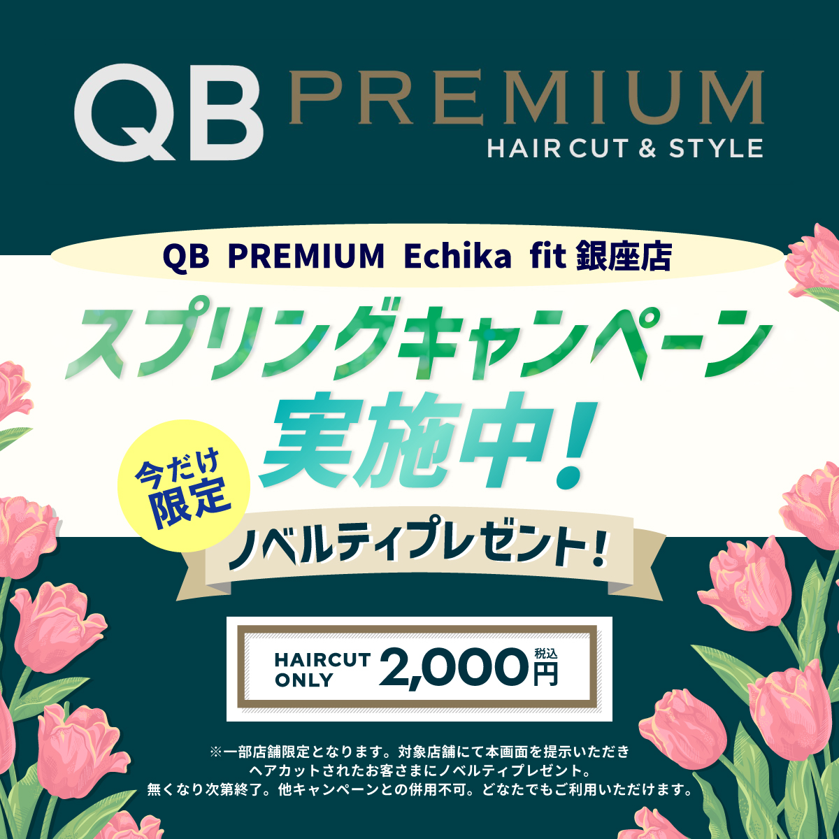 スプリングキャンペーン実施中! 今だけ限定ノベルティプレゼント。 引換期限:5月10日(日)まで。 ※当店をご利用のお客様限定。なくなり次第終了。他キャンペーンとの併用不可。